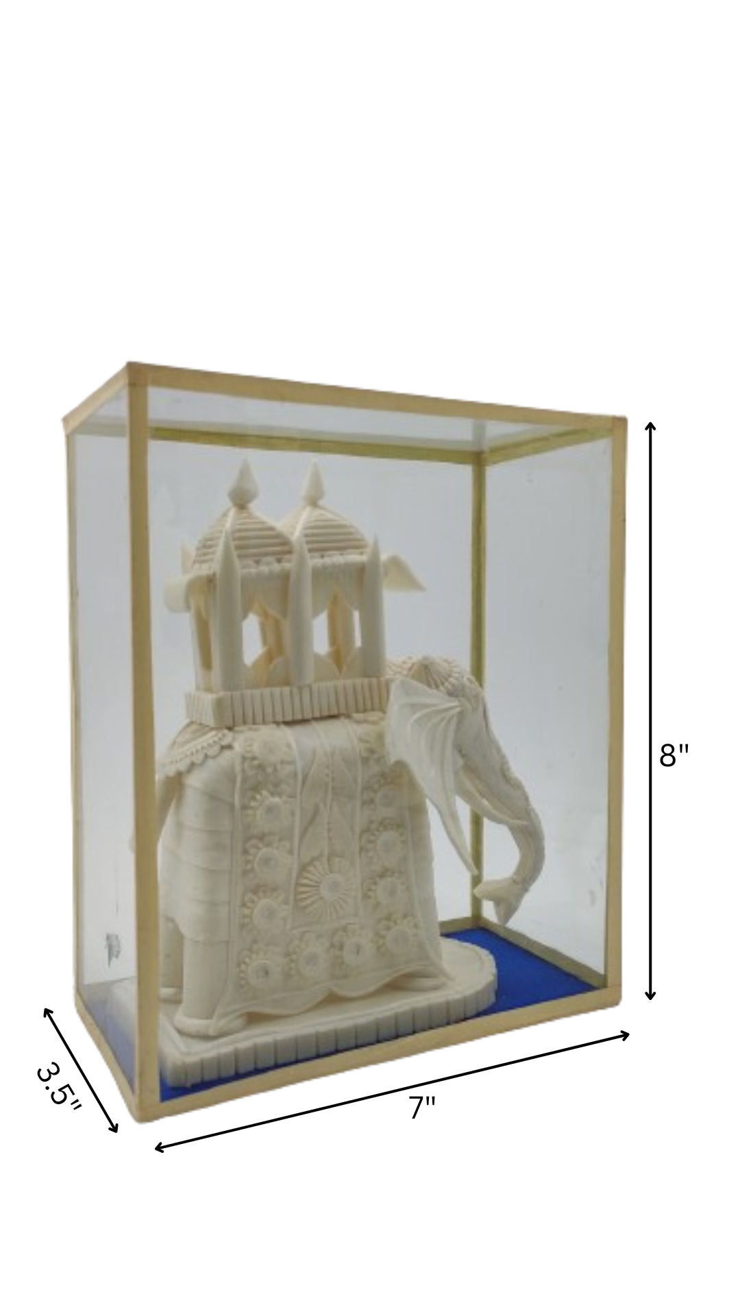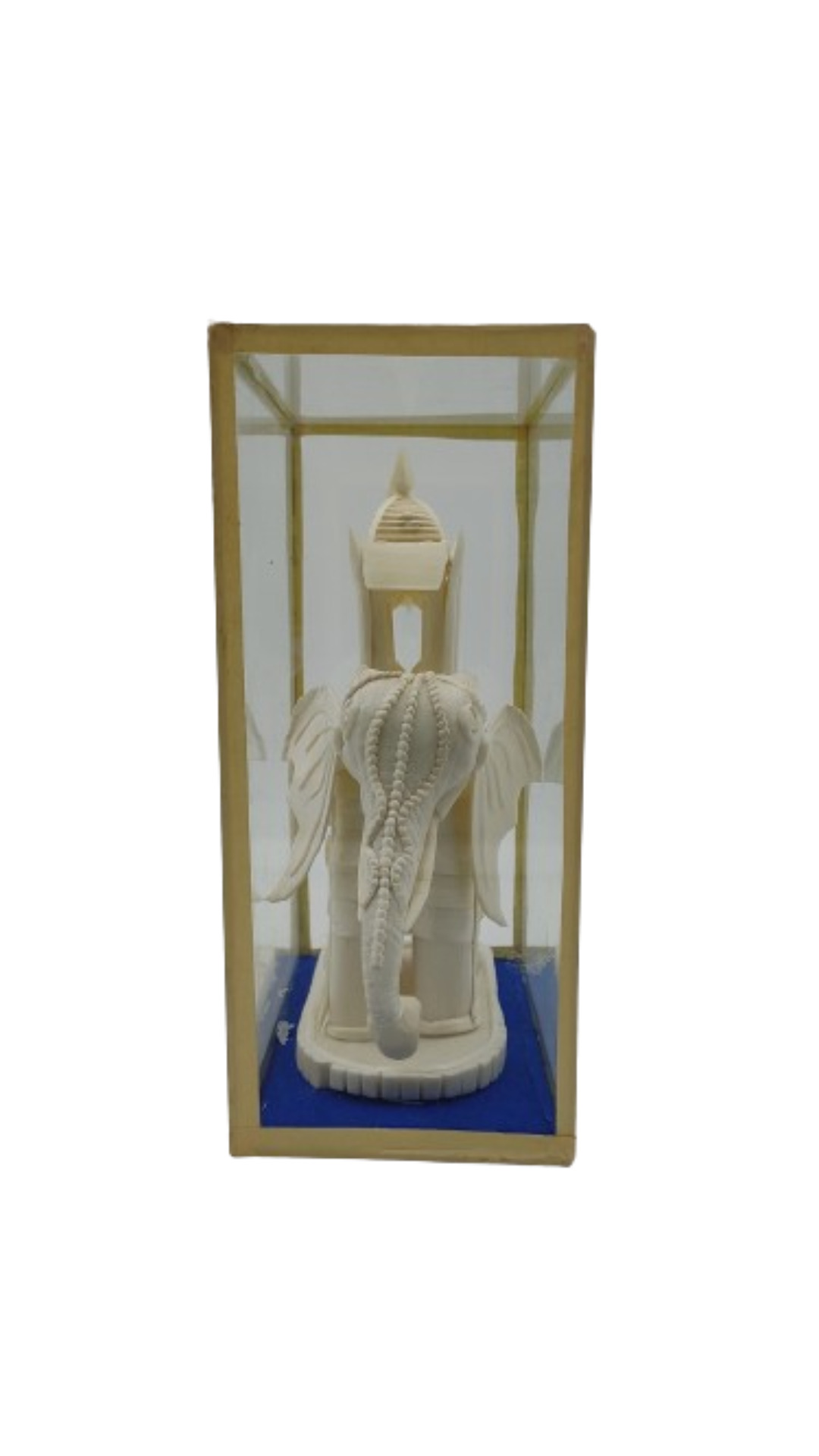 Graceful Sholapith Elephant: This table decor features a beautifully sculpted elephant made from Sholapith, known for its intricate craftsmanship. Symbolizing wisdom and grace, it adds an artistic touch to your decor ensemble. With its lightweight and detailed design, it embodies cultural richness and elegance.