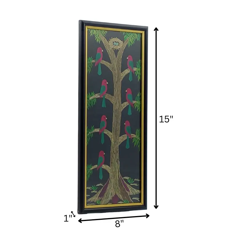 Harmony of Nature: Bring the serene beauty of nature indoors with our 'Chirping Birds on a Tree' wall art, artfully molded from vibrant multi-color straw. This enchanting piece captures the idyllic scene of birds perched on a tree, serenading the world with their songs. Invite the soothing sounds and picturesque charm of nature into your space with this exquisite artwork.