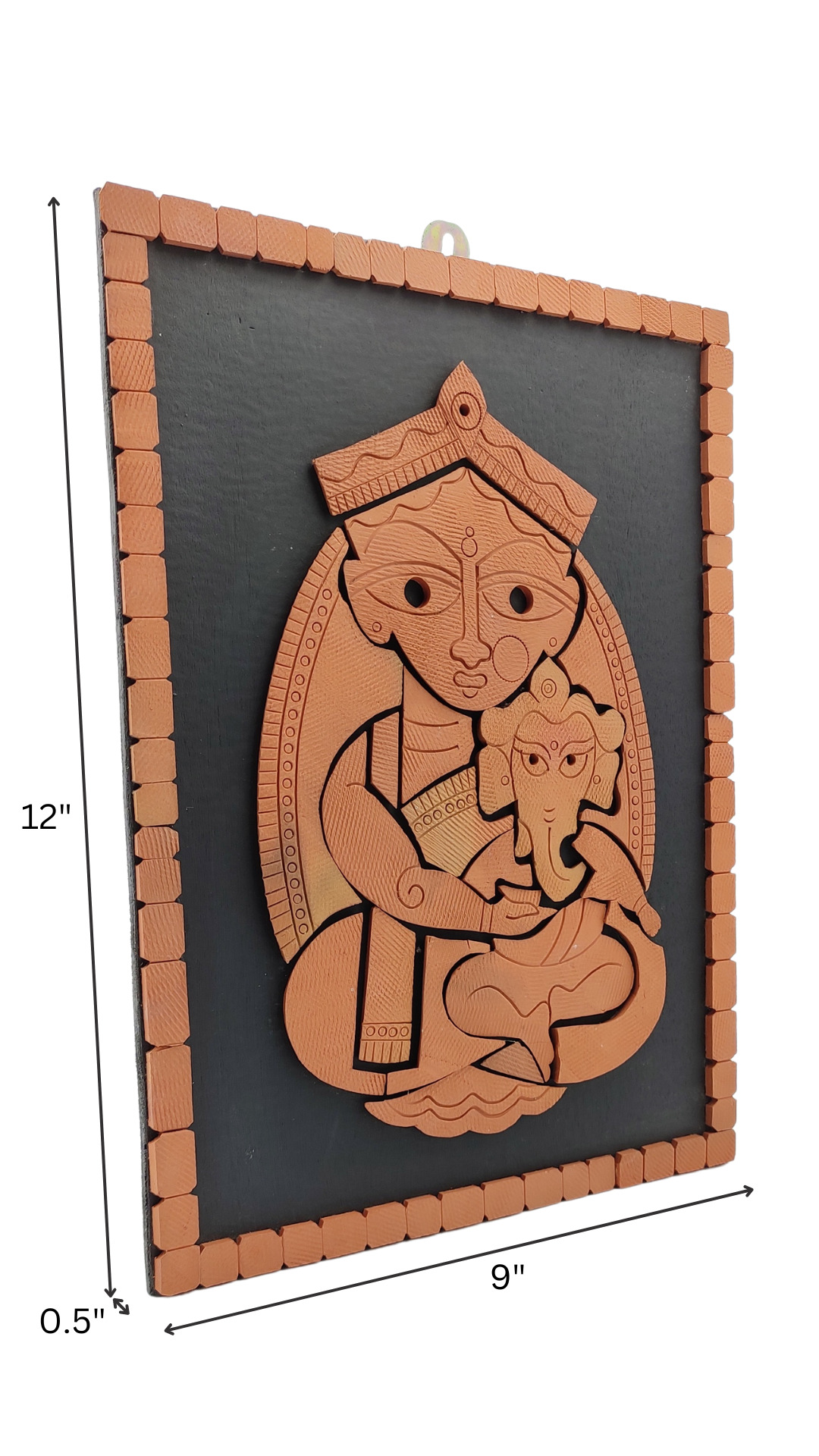 Divine Terracotta Wall Art: Revered Maa Durga and Ganesh intricately crafted in Terracotta, celebrating spirituality and grace. Enhance your space with this symbol of divine protection and auspicious beginnings.